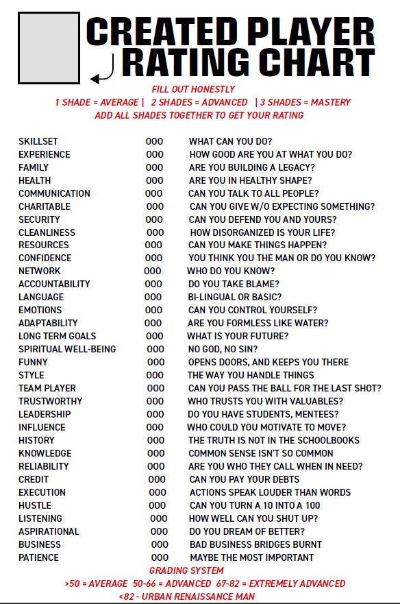 GRADE YOURSELF FROM 0-3 ON EACH OF THESE LIFE SKILLS TO DETERMINE WHERE YOU ARE CURRENTLY AND WHAT YOU NEED TO WORK ON TO LEVEL UP AND BECOME A 99!